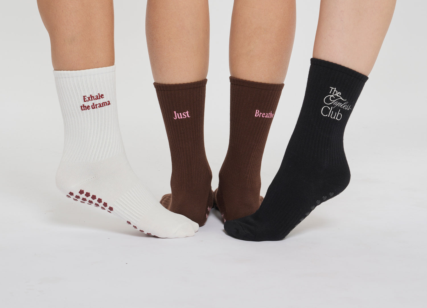 Trova il tuo equilibrio con i calzini antiscivolo “The Topless club”. Realizzati in morbido cotone elasticizzato, offrono comfort e traspirabilità ideali per yoga, pilates o momenti di relax in casa.