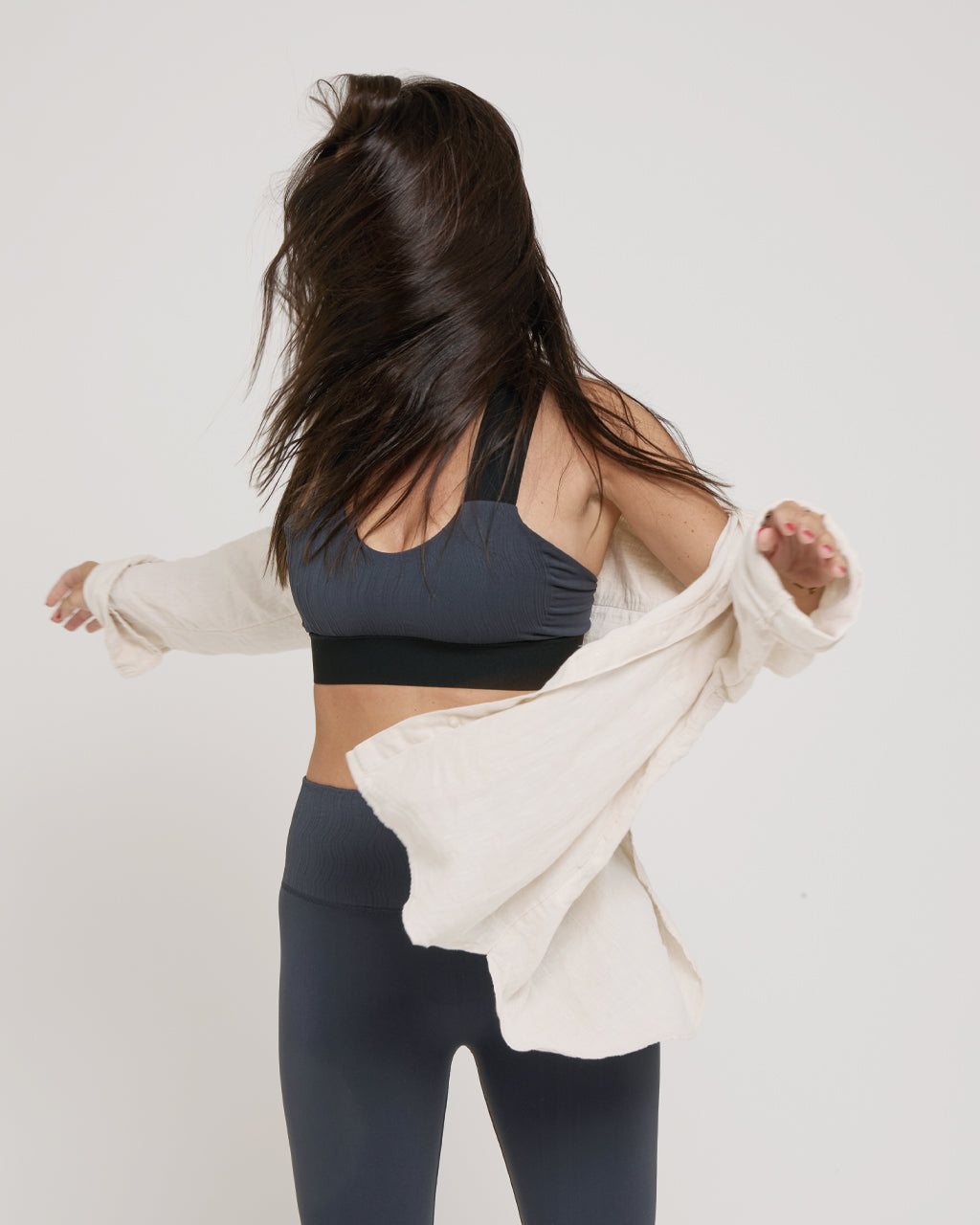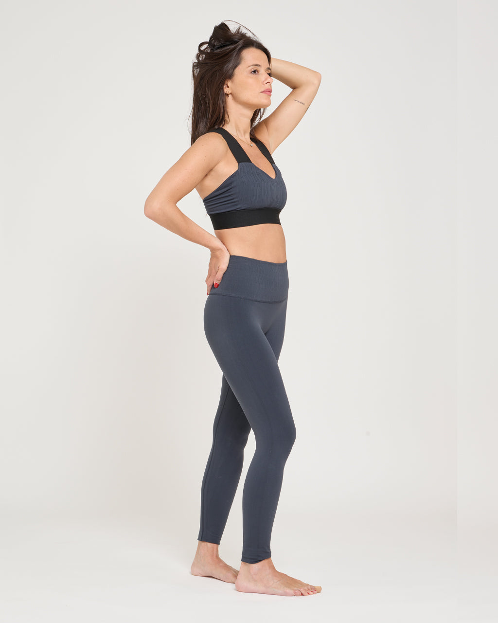 La linea Flow, pensata per il fitness e lo yoga, si distingue per la caratteristica lavorazione ondulata del tessuto.